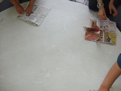 あらかじめ、丸に切っておいてくれた大小2枚の画用紙を、半分に折り、