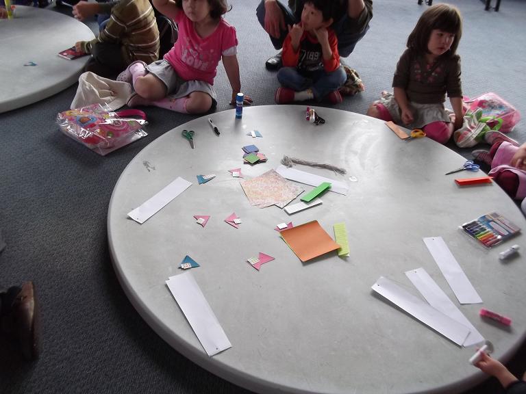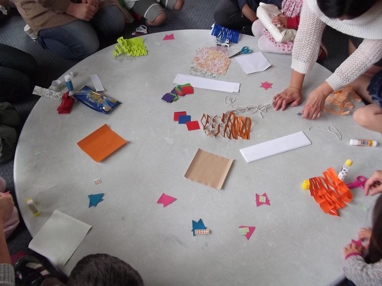 まず、担当のお母さんが用意してくれた折り紙で、天の川を作りました。
