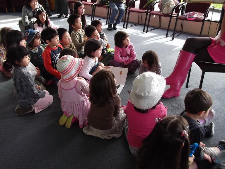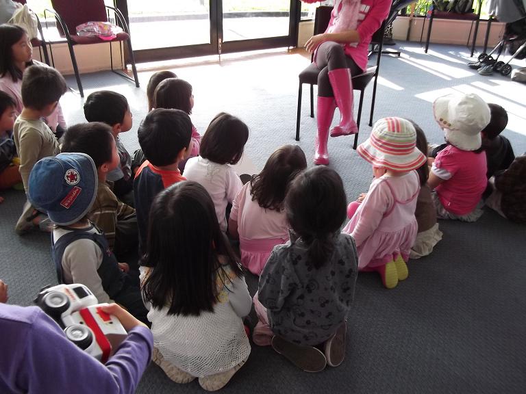 次は、お母さんたちが準備をしている間子どもたちは本の時間。