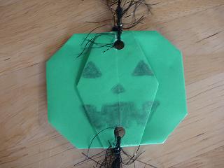 その後、かぼちゃのおばけの折り紙を折りました。